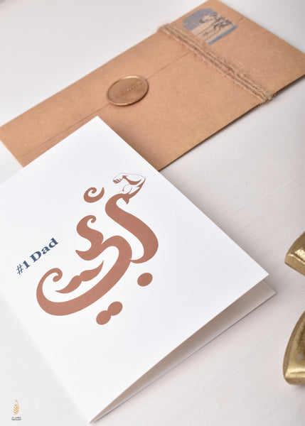 Celebrate your superhero father with our '#1 Dad' (أبي) card, where witty Arabic calligraphy meets modern design to declare what we've always known dad is literally the strongest!