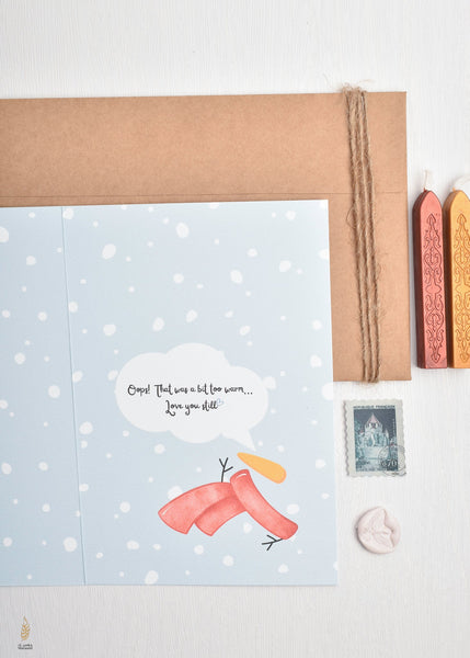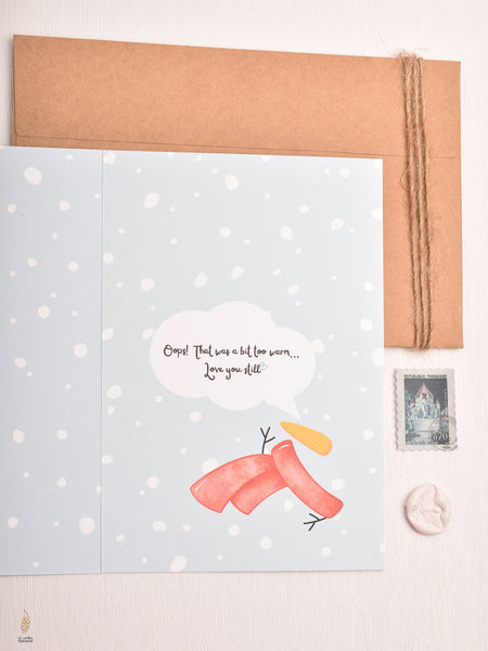 Wrap someone special in warmth with our adorably punny "Aboota" snowman card! This charming design features a sweet snowman making the cutest request ever "Aboota 'Hug' Please!" with a heartwarming plea for cuddles.