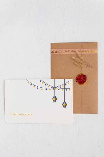 Embrace the timeless joy of Eid with Maraseel's exclusive "Folktales of Eid" greeting card. Capturing the warmth and charm of this revered occasion, this half-letter-sized card (8.5 x 5.5 inches) is a heartfelt addition to your Eid celebrations.
